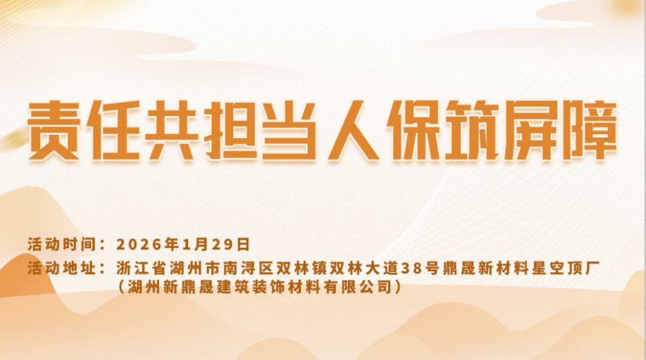 安全为基,经营无忧!安全生产责任险既是企业合规经营的“必备通行证”,更是守护员工安全、彰显企业担当的“暖心保障”。2026年1月29日,中国人保将走进湖州新鼎晟建筑装饰材料有限公司,开展安全生产责任险专项宣传活动,现场将有资深顾问提供一对一服务,解读条款、测算保额、解答理赔疑问,为企业精准匹配适配的保障方案。